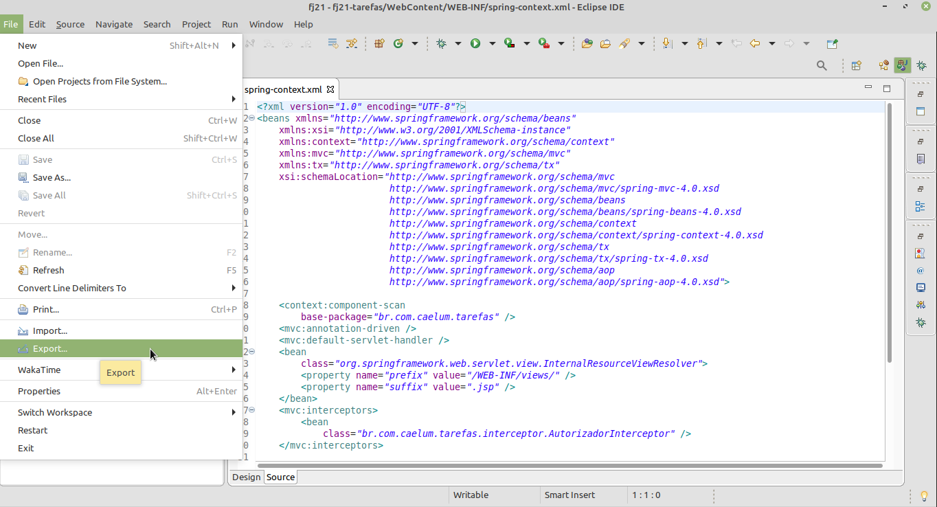 Cole o seu arquivo aqui: (Edit -> Paste). Repare que o diretório tarefas foi