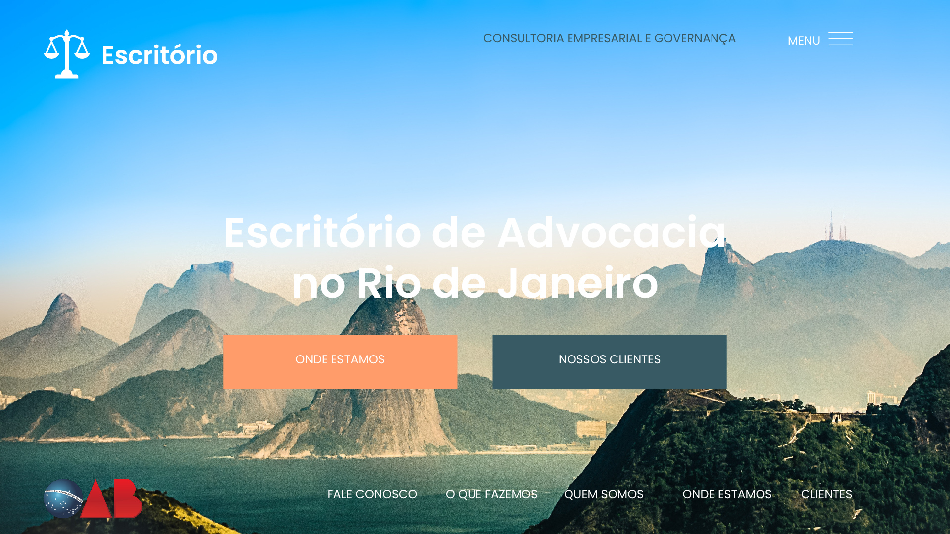 Compare a tela anterior com esta versão mais clean. Além de refazer o texto, foi necessário redimensionar e excluir algumas coisas. Lembre-se de avaliar sempre se todos os entrantes são realmente necessários. O logo da OAB, por exemplo, não fazia sentido e foi retirado. Reflita também sobre a ação esperada do usuário na página (um aspecto básico do UX) e trabalhe os elementos gráficos de acordo. Nessa tela em questão, o foco é levá-lo a fazer contato com o escritório. Assim, o único botão com fundo chamativo é o “Fale conosco”. Observe como o próprio logo da firma foi reduzido: se você clicou para acessar este site, não é preciso que esteja tão grande. A imagem ao fundo - extremamente distrativa no primeiro layout - agora está bem mais discreta. Isso acontece porque sobre ela foi aplicada uma camada de preto com baixa opacidade e a paisagem passou a contrastar mais com o texto. De um modo geral, este novo design facilita bastante a missão de encontrar a especialização do escritório e como entrar em contato.