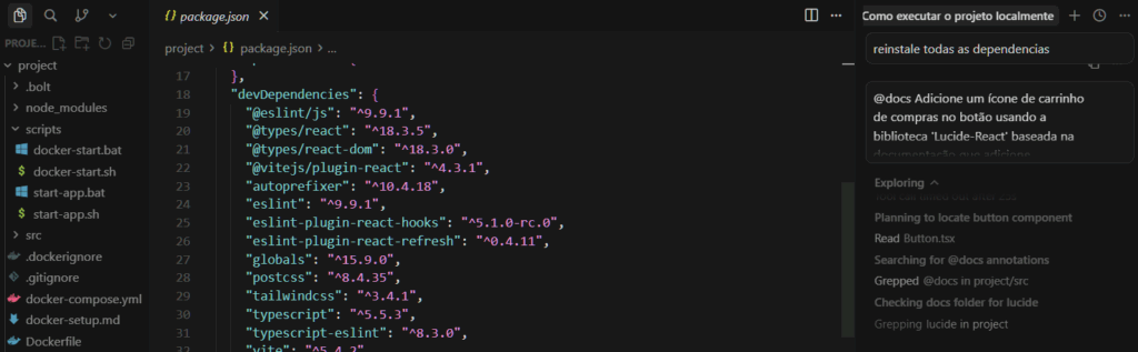 Passo 3: Documentação Decidimos usar uma biblioteca de ícones externa. Adicionamos a doc com @Docs e pedimos: