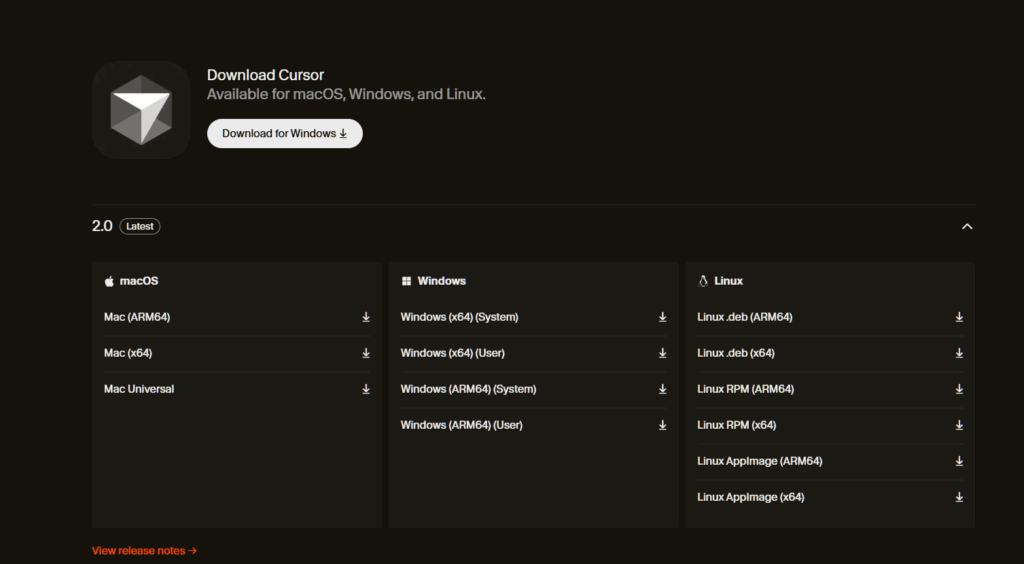 - Download: Clique no botão de download. O site detectará automaticamente se você está no Windows, macOS ou Linux.
