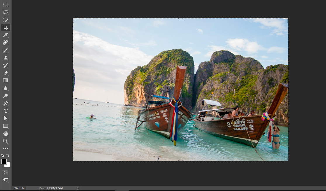 Temos uma ferramenta básica e ideal para o nosso caso, chamada de Crop Tool, na tradução Ferramenta de Corte. E é exatamente isso que ela faz, cortes na imagem! Então vamos usá-la!