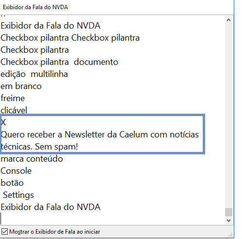 Agora vamos ver como um usuário de leitor de tela ouve esse lindo checkbox: