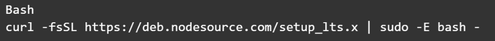 - Adicione o repositório do Node.js: Para garantir que você está baixando a versão LTS correta, execute o seguinte comando. Ele baixa e executa um script que configura o repositório oficial do NodeSource.
