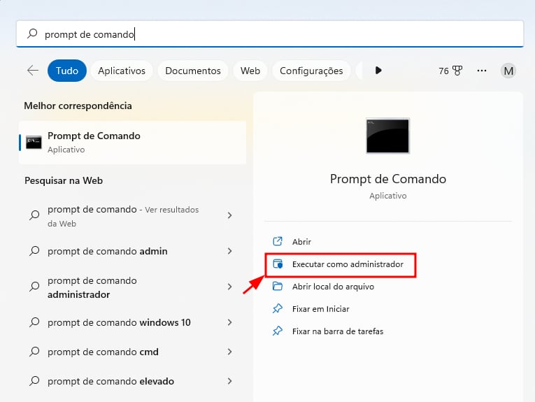 - Windows: Pressione as teclas Windows + R, digite "cmd" ou "Prompt de Comando" e clique em "Executar como administrador" para abrir com permissões elevadas.