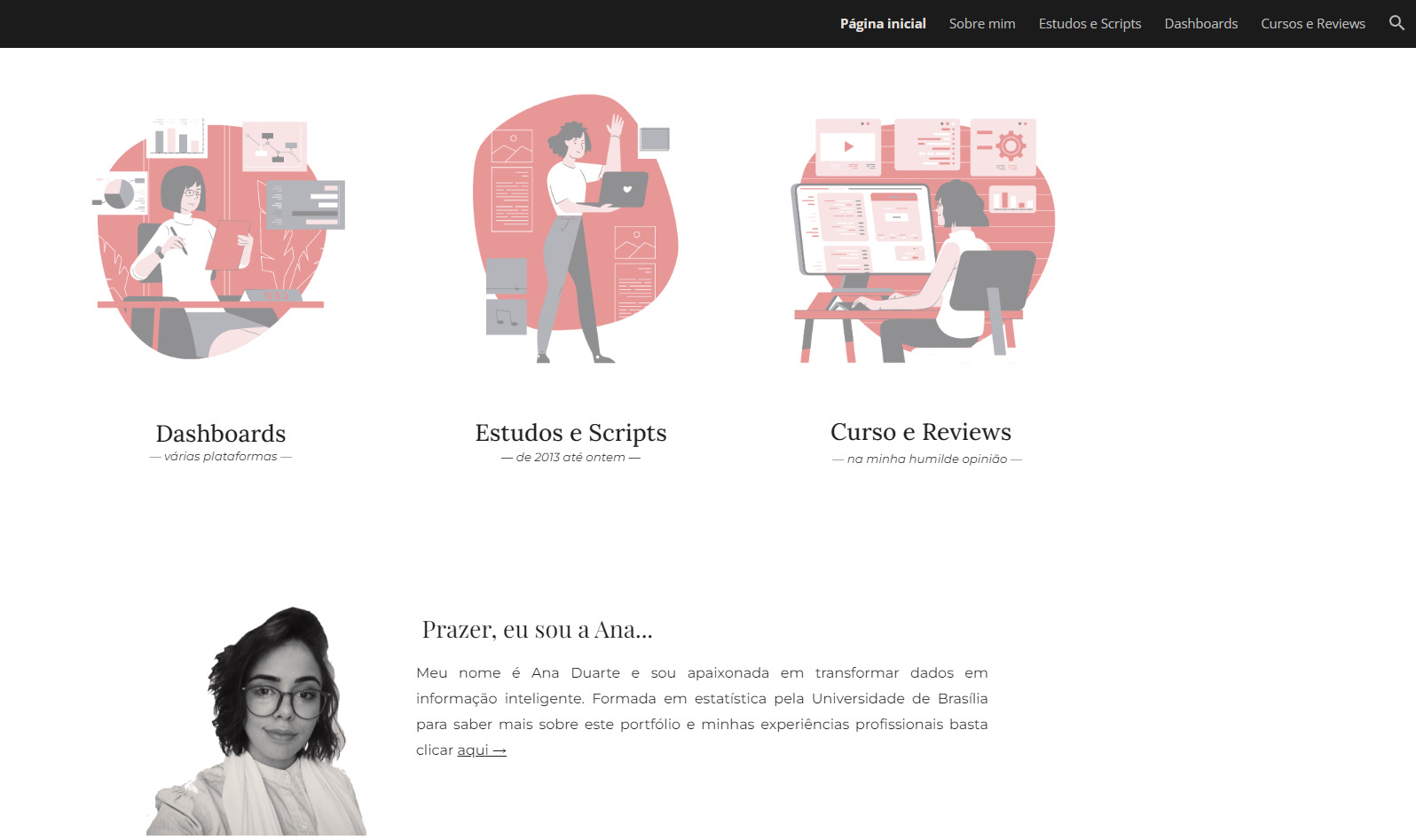 Um exemplo de portfólio em site pessoal seria o da nossa instrutora Ana Duarte: