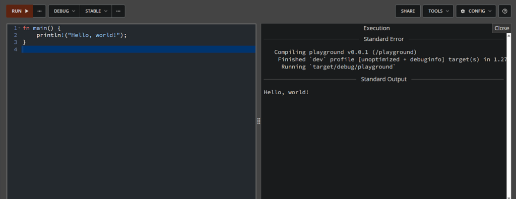 Figura 2 - Playground do Rust no navegador